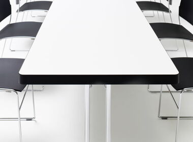 Beim Klapptisch KLT-34N liegen die Säulenfüsse aussen. So geniessen Benutzer auch stirnseitig volle Beinfreiheit.