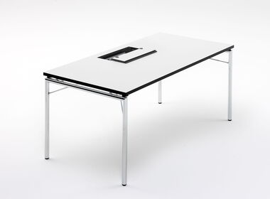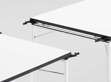 Die Tischplatte ist leicht abgehoben vom Gestell. Das macht den Tisch auch optisch besonders leicht und elegant. Optional kann der KLT-34-N mit Tischverbindern ausgerüstet werden.