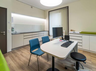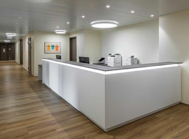 Hauptmieter ist die Praxisgemeinschaft AIZ welche uns ebenfalls mit dem Herstellen ihrer Möbel beauftragte. Das moderne Zentrum vereint verschiedene Fachbereiche und bietet seinen Patienten umfassende medizinische Dienstleistungen, darunter Röntgenaufnahmen, Ultraschalluntersuchungen sowie ein hausinternes Labor.