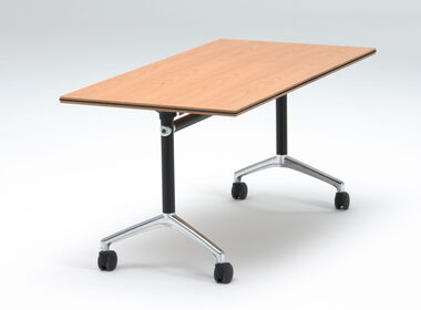 Der Klapptisch KLT-40 mit der seitlich klappbaren Tischplatte und dem Untergestell auf Rollen wird überall dort eingesetzt, wo Räume flexibel genutzt werden. In kürzester Zeit ist er bereit für das Meeting – und ebenso schnell wieder Platz sparend versorgt.