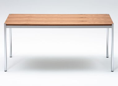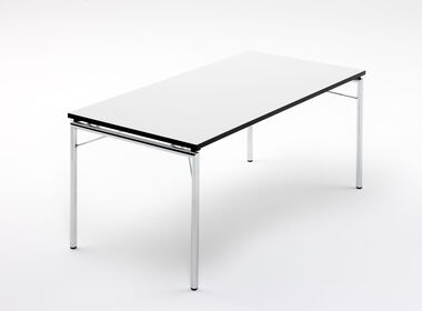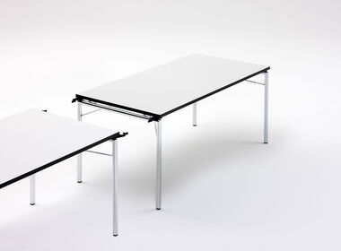 Die Tischplatte ist leicht abgehoben vom Gestell. Das macht den Tisch auch optisch besonders leicht und elegant. Optional kann der KLT-34-N mit Tischverbindern ausgerüstet werden.