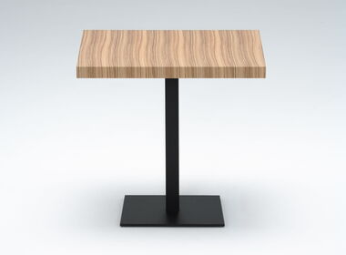 Als Oberfläche stehen Kunstharz, Linoleum oder Echtholz zur Auswahl. Optional sind die Klapptische mit Tischverbinder erhältlich. Untergestell: Ausleger Alu poliert; Standrohr und Traverse: Stahlrohr pulverbeschichtet schwarz.
