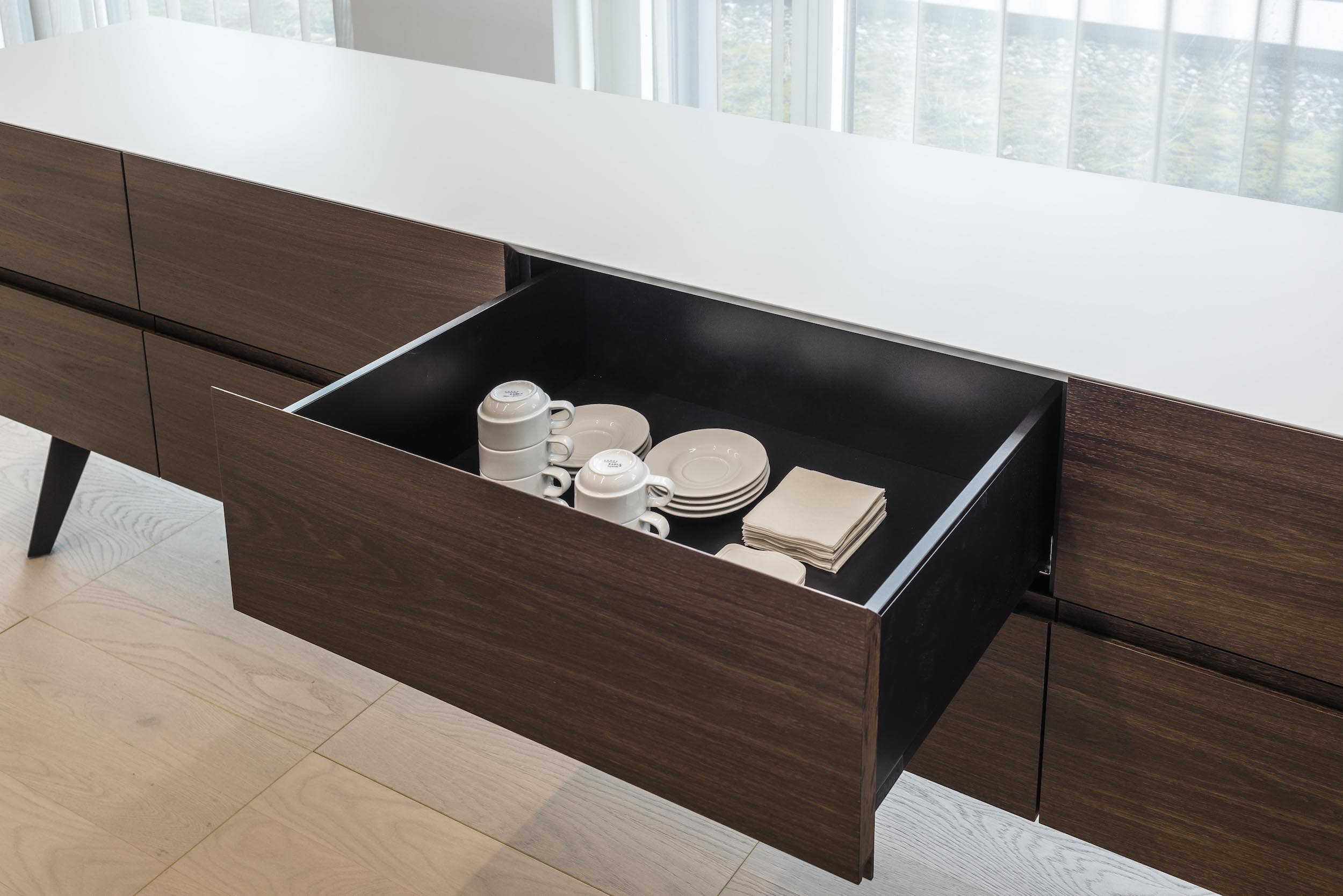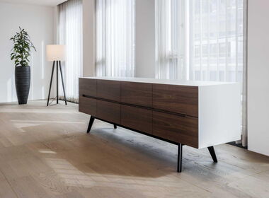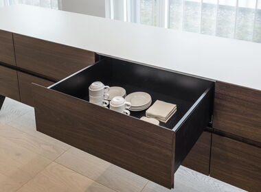 - Die Medienklappe kann in derselben Ausführung wie die Tischplatte gefertigt werden