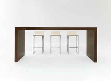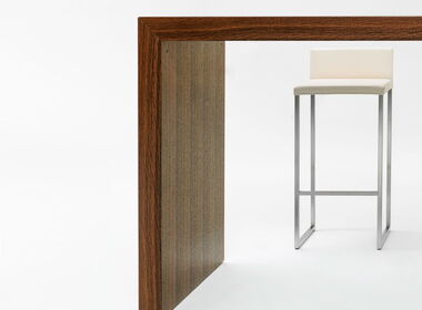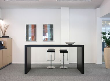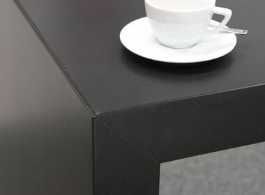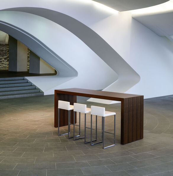 Der Longtable verleiht Räumen Eleganz und beeindruckt durch Geradlinigkeit und selbstbewusste Grösse. Edel und auf Gehrung verarbeitet, überzeugt er in repräsentativen Räumen für Kunden genauso wie in einfacherer Form fürs Bistro oder den Pausenraum.