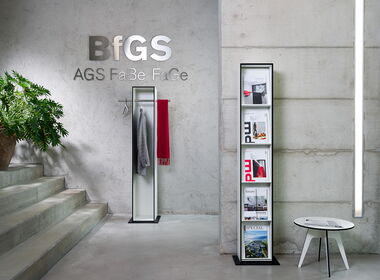- Als Garderobe oder Prospektständer im gleichen Design.