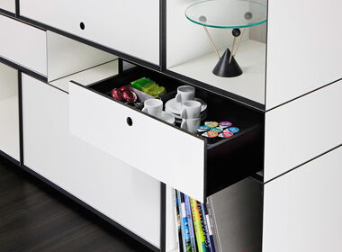 Als Sideboard, als frei hängendes Wandboard, als Caddy, oder einfach als Raummodul setzt es neue Massstäbe.