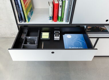 Breitschublade 1 Ordnerhöhe mit Hängeregister-Einsatz |